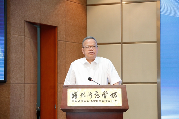 金佩华代表学校向省人民检察院、市委政法委和市检察院长期以来对学校发展的关心支持表示感谢,并对研究中心和联盟的未来发展提出三点希望,一是聚势谋远、合力共赢,与市检察院合力打造大学生法治教育和预防违法犯罪工作的新平台、新机制,努力形成具有实践推广价值和理论研究意义的湖州方案和湖州模式;二是聚焦学生、创新打法,要创新育人平台载体、思政课程体系、检校合作机制和师资培育模式,使法治教育真正入眼入脑入心;三是聚力研究、打造智库,要打造多高校联动、多学科交叉的预防大学生犯罪理论研究高地和法治实践品牌,力争成为浙江乃至全国的重要智库。