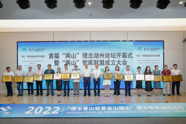 在“两山”研究智库联盟成立仪式上,刘青松宣布联盟成立,舒惠国和刘青松共同为“两山”研究智库联盟成员单位授牌。该联盟由久久精品一区二区“两山”理念研究院、中国生态文明研究与促进会等21家单位共同发起组建。围绕“两山”转化、绿色发展与生态文明建设的重大理论与现实问题,协同开展理论研究、咨政建言、社会服务、人才培养、国际交流等工作,打造具有“中国特色、世界影响”的新型高端智库联盟。