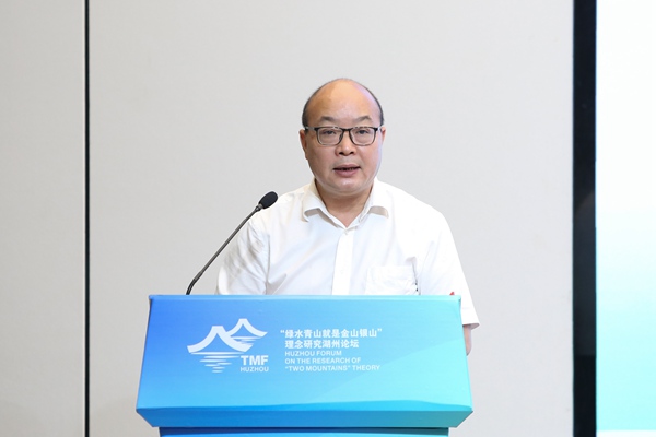 申中华致辞。他表示,沿着习近平总书记指引的方向,湖州感恩奋进、逐绿前行、蓄势蝶变,全面扮靓绿色环境的生态颜值、大力构建绿色低碳的发展模式、加快打通绿色共富的转化通道。当前,湖州正深入贯彻省、市党代会精神,推进“在湖州看见美丽中国”实干争先主题实践,奋力打造实力、活力、品质、人文、美丽、幸福“六个新湖州”,努力全方位、多维度、立体化地展示“在湖州看见美丽中国”,以优异成绩迎接党的二十大胜利召开。此次论坛是一次思想的盛宴,在绿水青山间、在脑力激荡中,相信各位“智囊”和“大咖”一定能碰撞出璀璨火花,形成丰硕成果,推动打造理论溯源的“两山”品牌、资政服务的“最强大脑”、生态文明的传播高地。