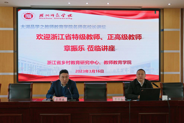 近日,“太湖品学之教师教育学院名师名校长讲坛(七)”在我校顺利举办。本次讲坛由省乡村教育研究中心、教师教育学院主办,特邀杭州市富阳区富春第七小学教育集团书记、校长章振乐担任主讲人,作了主题为“‘从小热爱劳动’——新劳动教育的富阳实践”的专题讲座。校原党委书记、省乡村教育研究中心主任刘剑虹出席,教师教育学院教师及学生等100余人参加。